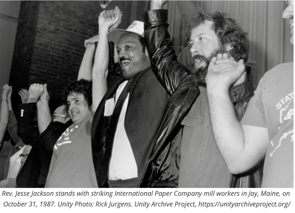 A woman striker told strike organizer Peter Kellman, "Yesterday I wouldn't think of voting for a Black man for president. Tonight I gave him a check for his campaign." With the support of Maine labor, Jackson finished a strong second at the Democratic caucuses in the overwhelmingly white state. Meserve became a Jackson delegate at the 1988 Democratic Convention. The experience of the strike inspired multiple Jay strikers to run for political office, winning seats on the Jay Select Board and being elected to the Maine Legislature.