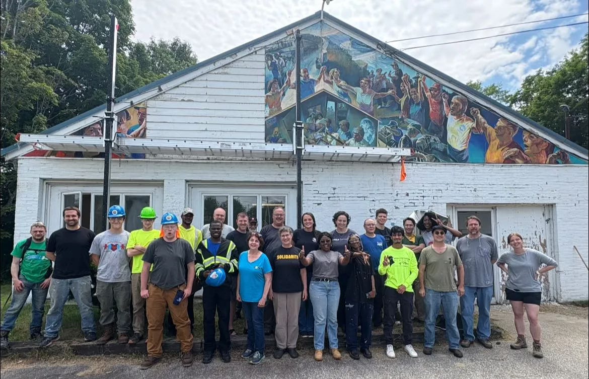 On July 1, a diverse cohort of pre-apprentices from the Union Construction of Maine gathered at the Local 14 Solidarity Center in Jay for a day of work and learning. The workers — which included young Mainers just out of high school, working parents and immigrants from five different nations — were joined by a group of retired paper mill workers who participated in the 16-month International Paper Strike of 1987-88. The pre-apprentices worked in teams to paint the inside of the hall, landscape around the building and install new front steps. Lunch was followed by presentations about the strike from the people who were there.
