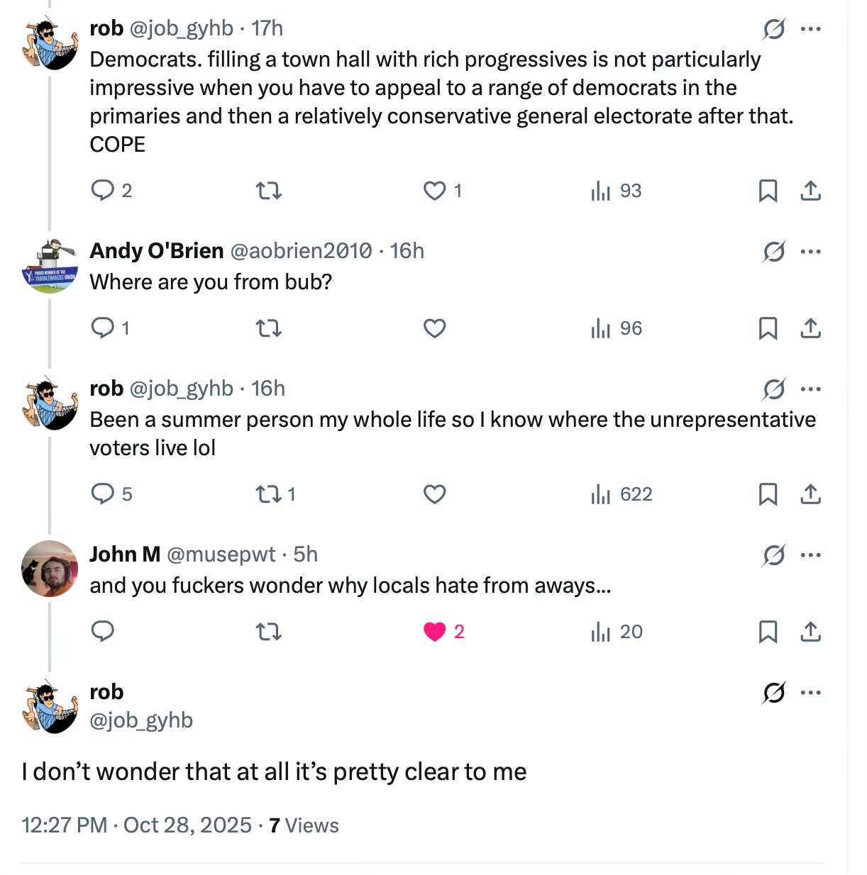 The absolute WORST are the DC consultants who grew up in Maine and want to pontificate about what Mainers think or should think. They’ll be first up against the wall when the revolution comes, I say. (Joke!). I also got a kick out of Massachusetts Democratic Congressman Jake Auchincloss, a left-punching Harvard graduate from a very wealthy family, demanding that Graham drop out of the race. Probably the most effective way to get Graham Platner elected is for some rich Masshole politician to tell Mainers who our candidates should be.
